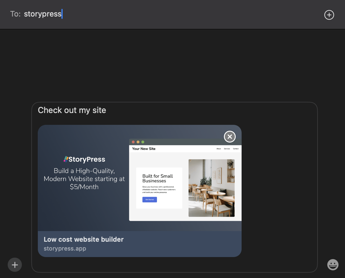 StoryPress ships with the correct OG tag structure already in place. You’re never left with a blank or broken preview.
